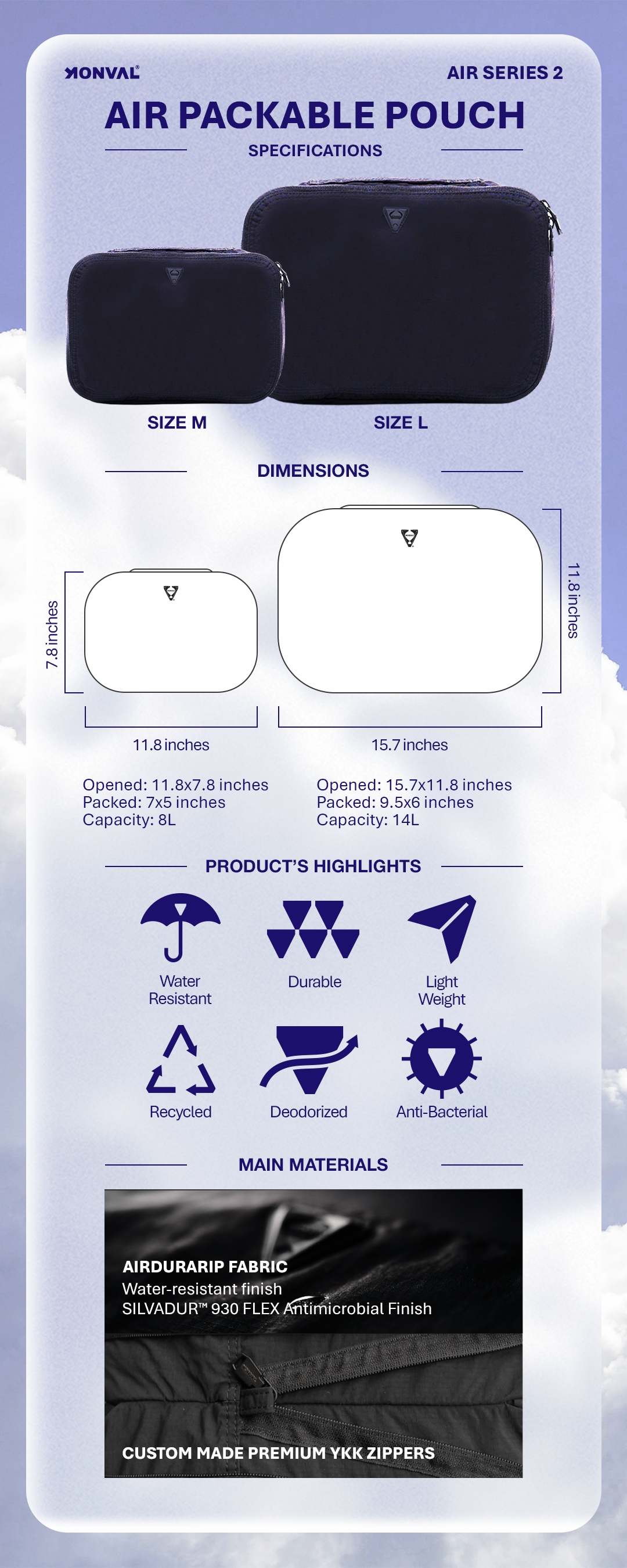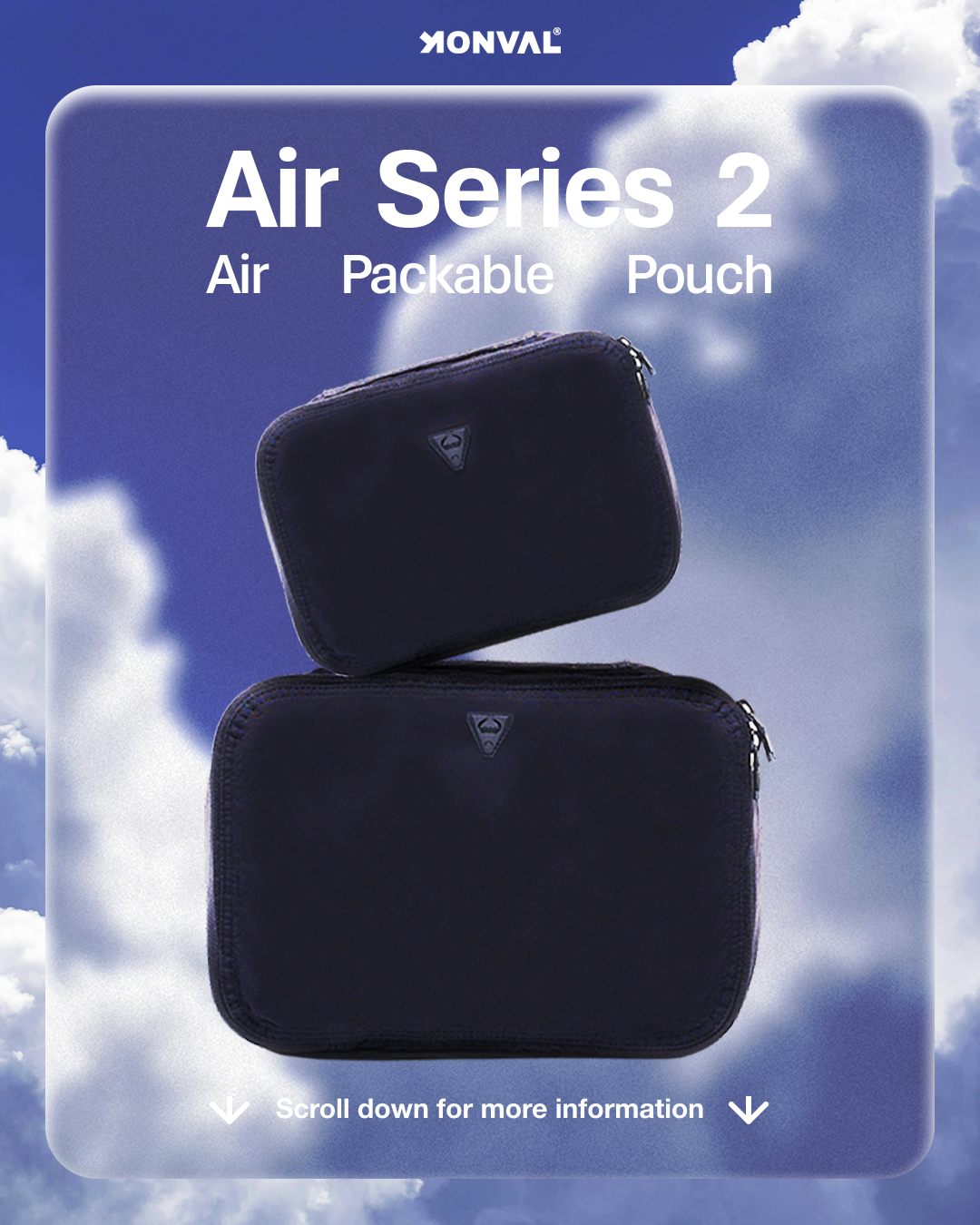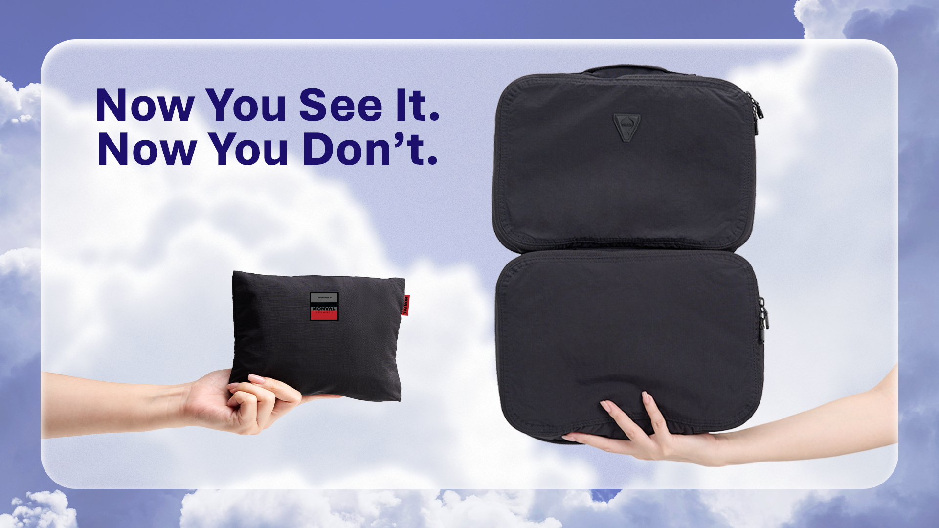 A packable pouch that folds flat in your bag and expands to organise your travel and EDC essentials.
